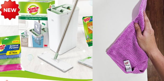 The Scotch-Brite™ Hands Free Mop with Compact Bucket, Scotch-Brite™ Easy Sweeper Plus+ Paper Wiper Mop, Scotch-Brite® Scrub Dots Sponges and Scotch-Brite™ General Purpose Cloth and other Scotch-Brite™ products are available for purchase at key retail stores in Malaysia and Singapore. Online shoppers may visit the official online stores of Malaysia or Singapore based on their location to make purchases. The options are as follows: