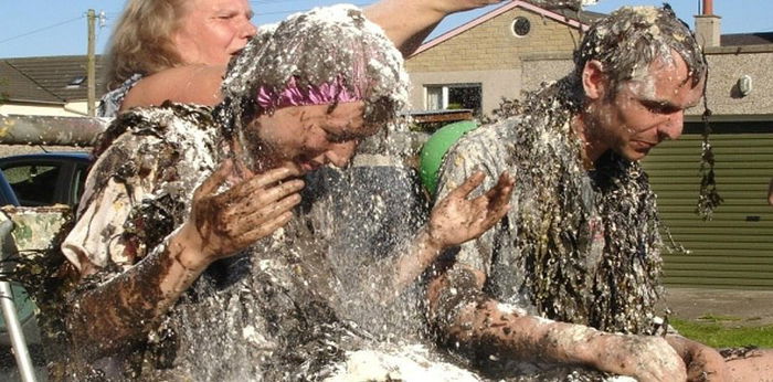 Ya, anda membacanya dengan betul. Untuk adat perkahwinan di Scotland ini, pengantin harus menghadapi penyeksaan dibaling telur busuk dan ikan ketika tradisi pra-perkahwinan!