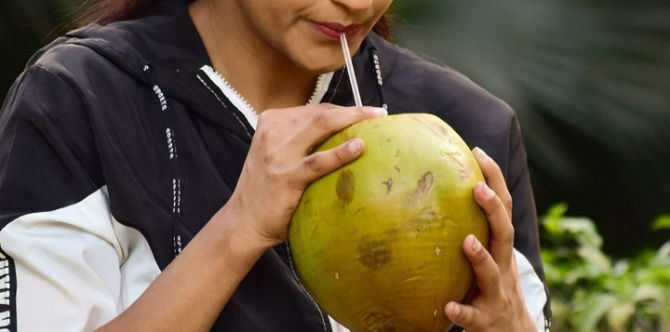 Air kelapa merupakan sumber semula jadi yang kaya dengan elektrolit seperti kalium, natrium, dan magnesium. Minuman ini membantu menggantikan cecair yang hilang akibat peluh yang berlebihan, serta mengekalkan keseimbangan cecair dalam tubuh. Ia juga membantu menurunkan suhu badan dan memberikan kesegaran segera.