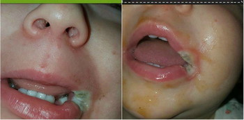 Anaknya telah memasukkan wayar pengecas yang terpasang ke dalam mulut dan aliran elektrik telah meninggalkan kesan lecur di tepi mulut si kecil itu.