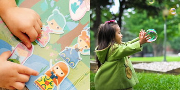 Siapa sahaja tidak suka bermain buih sabun kan? Zaman kanak-kanak tidak akan lengkap tanpa permainan ini. Caranya ibu ayah tiupkan buih sabun dan minta anak kejar untuk letupkan buih berkenaan.