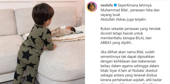 Menerusi perkongsian terbaru di akaun Instagram Neelofa, ibu kepada dua orang cahaya mata comel ini telah pun berkongsi akan nama kepada adik Bilal tersebut.