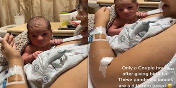 Bayi pandemik buka mata & angkat kepala walaupun baru beberapa minit dilahirkan