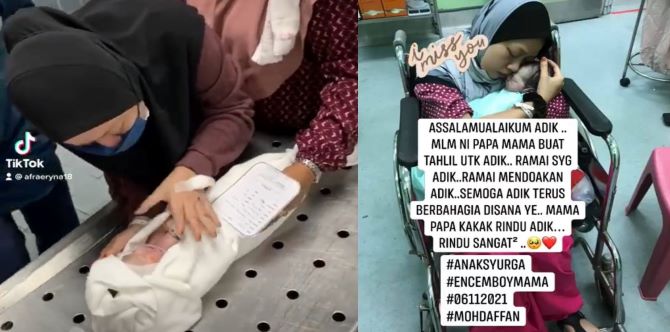 Berat mata memandang berat lagi bahu yang memikul. Begitulah rata-rata yang melihat video yang dikongsi Puan Muniey di akaun TikTok miliknya. Video itu memaparkan ibu ini memandikan sendiri jenazah bayi kedua yang baru dilahirkannya. Sesungguhnya bayi jantung berlubang memang tidak asing, tapi apabila ia berlaku pada kita sendiri, berat sungguh ujian yang diberiNya.