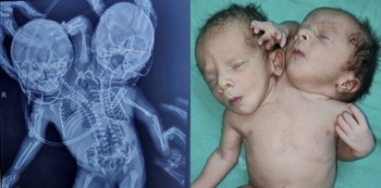 Biasanya bayi yang mengalami masalah ini memiliki keadaan di mana dua kepala bercantum pada satu bahagian tubuh. Selalunya, ia boleh mengakibatkan risiko kelahiran mati (stillbirth).