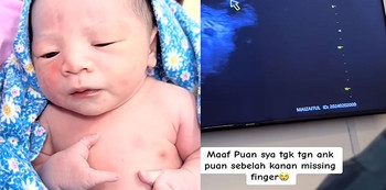 Hati ibu mana yang tidak sedih bila mengetahui anaknya tidak akan sama seperti orang lain. Seperti yang tular baru-baru ini, perkongsian seorang ibu di TikTok menceritakan bahawa bayi lahir missing finger pada tangan kanan diketahui sewaktu melakukan imbasan ultrabunyi ketika kandungannya berusia 27 minggu.