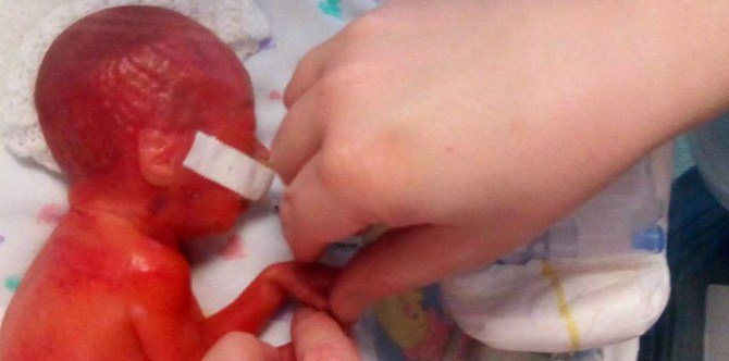 Bayi dalam gambar itu berasal dari England dan beliau telah dilahirkan pramatang pada usia 23 minggu. Seluruh badan bayi itu nampak kemerah-merahan disebabkan kulit yang sangat nipis.