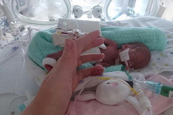 Selepas dilahirkan, beliau diberi bantuan mesin sokongan dan dijaga di unit penjagaan rapi neo-natal.