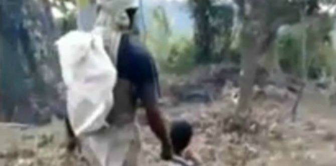 Dalam video itu, ia menunjukkan Jenny memegang satu hujung batang kayu manakala bapanya memegang hujung yang lain.