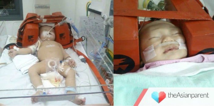 Xuan Xuan dirawat di PICU selama 10 hari, dan dimasukkan tiub dibelakang kepala bagi membolehkan darah beku keluar dan mengurangkan tekanan pada otak si kecil itu.