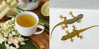 Ambil sebatang serai atau beberapa batang serai. Jika dapat serai yang segar lebih baik. Potong atau hiris serai untuk mengeluarkan aromanya. Letakkan di tempat laluan cicak. Ganti secara berkala.