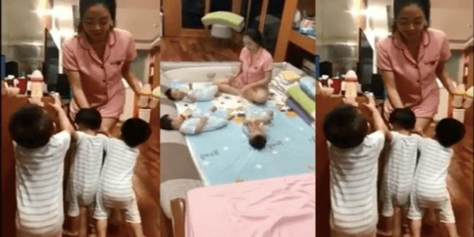 Tapi seorang ibu di China ini ternyata hebat apabila berjaya mengendalikan anak kembar tiganya dengan sangat teratur ketika menyusu!
