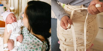 - Berbaring agar lebih mudah untuk ikat lebih ketat memandangkan perut ibu meleper ketika dalam keadaan berbaring berbanding dengan berdiri