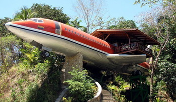It is properly nestled on to the edge of the National Park in Costa Verde and is perched on a 50-foot pedestal. At this height, you will enjoy scenic ocean and jungle views from the hard wood deck built atop the plane’s former right wing.
