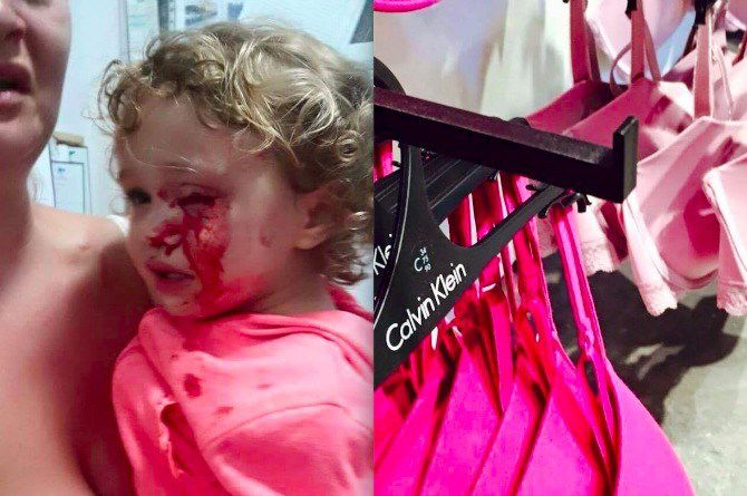 Menurut akaun yang menyebarkan foto mengerikan ini, ibu si gadis kecil ingin gambar anaknya beredar di media sosial sehingga ibu-ibu lain dapat menyedari bahayanya bermain di antara rak pakaian bagi anak-anak.