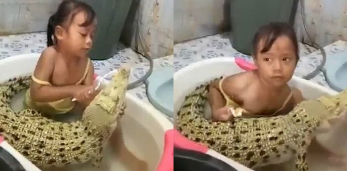 Pernah tak anda terfikir membela seekor haiwan liar seperti buaya, harimau, gajah, ular dan lain-lain? Sebabnya, baru-baru ini ada satu video viral di mana seorang kanak-kanak dilihat gosok gigi buaya di dalam bilik mandi rumahnya. Budak perempuan ini dilihat sangat berani memegang dan menyentuh tubuh haiwan liar itu.