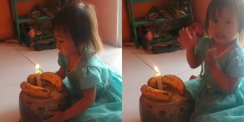 Rakaman video dengan durasi 28 saat itu memaparkan Clarisa Putri Sabintang teruja untuk meniup lilin yang dikelilingi dengan perhiasan buah pisang dan limau.