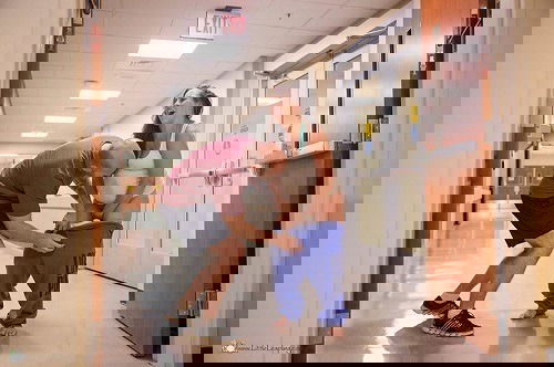 Jes bergegas mengajak suaminya, Travis untuk segera ke hospital. Ketika dalam perjalanan, beliau terus menghubungi jurugambar yang telah diupah untuk mengambil gambar proses bersalin beliau.