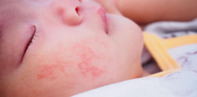 - Bengkak atau sesak nafas: Jika ruam muncul bersama bengkak di muka, bibir, atau mata atau bayi mengalami kesukaran bernafas, segera dapatkan rawatan kecemasan.