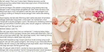 “Saya ulang sekali lagi, memag tiada. Isteri sedia ada akan dimaklumkan dengan tuntutan poligami encik.”