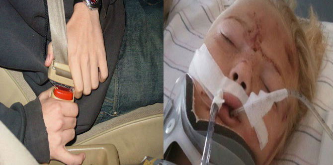 Kecederaan sebegini biasanya terjadi apabila anak kecil memakai seat belt dengan cara yang tidak betul – sama ada talinya diletakkan terlalu rendah atau terlalu tinggi pada badannya.