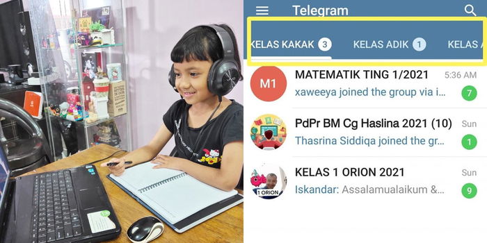 ”Kelas online PdPR bermula hari ini. Ibu ayah sudahkah kalian bersedia? Cikgu-cikgu pun sudah mula buat group Telegram untuk memudahkan sesi belajar.”