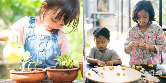Selain di dapur, anda juga boleh mencuba dengan aktiviti menanam tumbuh-tumbuhan di sekitar rumah. Ia mendedahkan anak untuk menyentuh tanah, mencangkul rumput dan menyiram. Pengalaman ini berupaya mendekatkan diri si manja tentang ilmu sains serta pertanian juga, bagaimana tumbuh-tumbuhan melalui proses fotosintesis dan cara penjagaan pokok dengan betul.