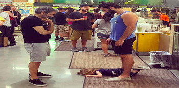 Apabila kita memerhati pembeli dalam latar belakang foto ini, ia agak jelas yang mereka sebenarnya tidak melihat pun, apatah lagi menilai.