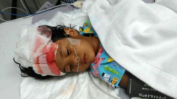 Oum segera dilarikan ke rumah sakit di Rayong, Thailand, di mana ahli bedah melakukan operasi kecemasan untuk menghentikan pendarahan dari luka sedalam 4 inci di kepalanya.