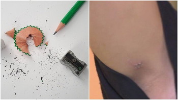 Insiden menakutkan ini terjadi kepada Kolston Moradi yang berusia 8 tahun. Sebatang pensil yang sangat tajam tercucuk keluar dari beg sekolahnya serta mencucuk arteri di lengannya.