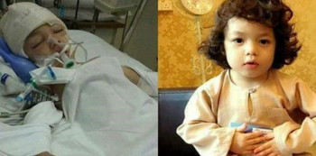 Syarul Ariel Rifqi Mohd Azriq, 5, terlantar koma selepas terjatuh ketika bermain ‘inflatable bouncer’ (pelantun boleh kembung) di rumahnya di Persiaran Sungai Gelugor, Georgetown.