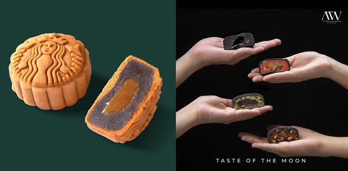 (from left) Starbucks’ Caramel Macchiato Mooncake and Matcha Adzuki Mooncake