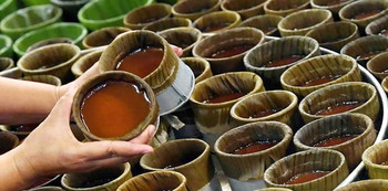 - Sediakan periuk kukusan untuk mengukus. Letakkan acuan ke dalam periuk kukusan dan tutup periuk. Untuk kukusan: 30 minit pertama kuih bakul perlu dikukus dengan api kuat. Selepas 30 minit, kecilkan api kepada tahap sederhana selama 4 hingga 5 jam.