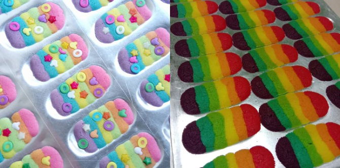 - Masukkan ke dalam piping bag dan paipkan memanjang dalam lebih kurang seinci lebih. Ulang pada warna lain.