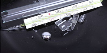 - Jika anda secara tidak sengaja memecahkan termometer, jangan gunakan vakum untuk bersihkannya kerana haba sedutan boleh menyebabkan gas merkuri meruap dan merebak ke seluruh rumah.