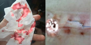 Tengah bersihkan infeksi keluar pula darah yang banyak dan sangat pedih. Bila jadi macam ini, saya perlu segera jumpa doktor untuk ambil antibiotik.