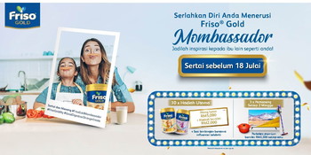 Sertai pertandingan Friso® Gold Mombassador mulai 8 Jun 2021 hingga 18 Julai 2021 dan berpeluang memenangi wang tunai dan hadiah eksklusif bernilai RM7,000 setiap satu. Friso®️ Gold juga akan memberi ganjaran kepada 3 penyertaan paling kreatif pada setiap 2 minggu dengan perkakas premium bernilai RM2,500 setiap satu!