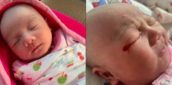 Difahamkan bayi berkenaan baru berusia 14 hari mengalami mata bengkak dan berdarah. Ini sekaligus membuatkannya berasa sangat sedih.