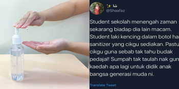 Tular di laman Twitter mengenai perlakuan pelajar sekolah menengah yang tergamak kencing dalam botol hand sanitiser yang disediakan guru di sekolah. Lebih parah, guru menggunakannya kerana tidak tahu ada air kencing dalam bahan itu!