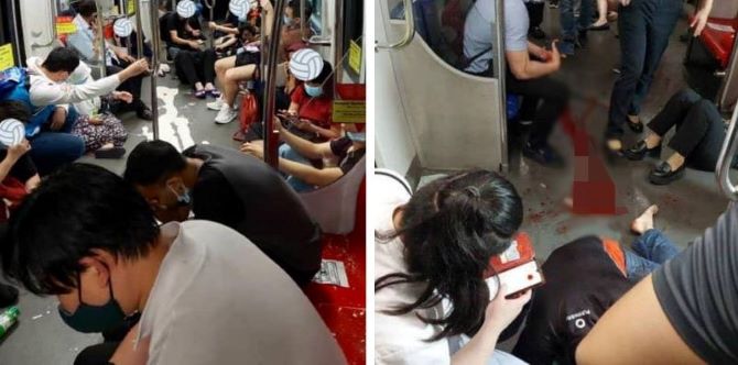 Dalam sekelip mata keadaan di dalam tren bertukar menjadi huru-hara. Penumpang ramai yang berlumuran darah.