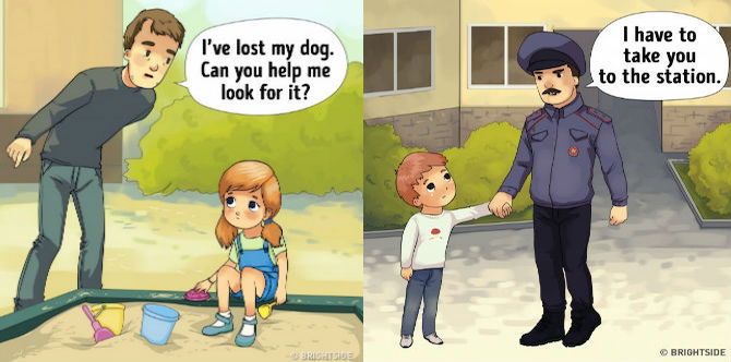 Bright Side, ada berkongsi 11 tanda untuk ibu ayah mengenal penculik kanak-kanak. Mereka selalunya akan menggunakan strategi berikut semasa berinteraksi dengan anak kecil.