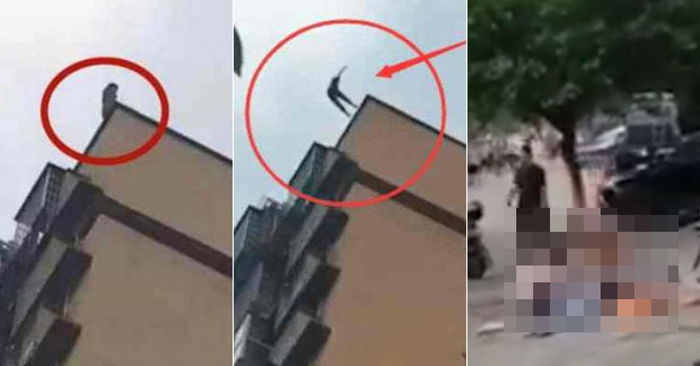 Melihat anak gadisnya ingin terjun dari bumbung bangunan 25 tingkat, bapanya cepat-cepat cuba untuk menyambut anaknya dari tingkat bawah, malangnya si bapa maut dihempap anaknya itu.