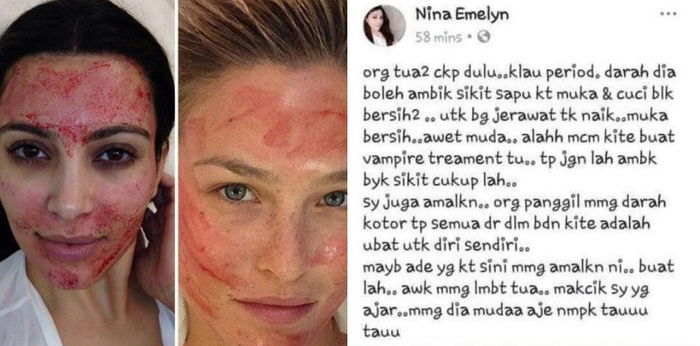Apa yang penting, darah yang digunakan untuk vampire treatment ini adalah darah yang diambil apabila kulit dicucuk dengan jarum dan bukannya dari darah haid.