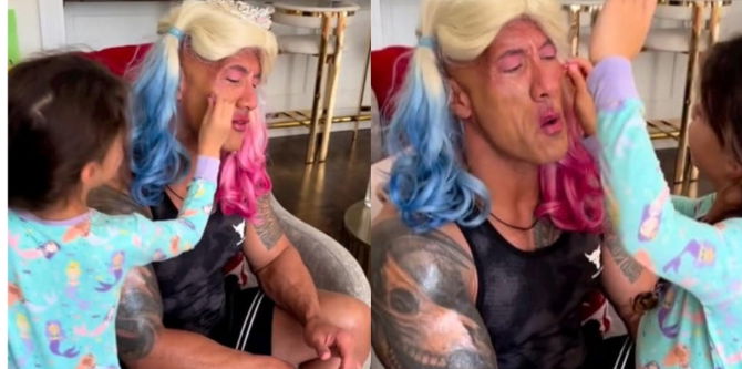 Beberapa minggu yang lalu, pelakon Dwayne Johnson berkongsi video comel memaparkan dirinya bersama anak perempuan, Jasmine Johnson dan Tia Giana Johnson bermain alat solek.