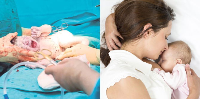 Sesetengah hospital menggalakkan sentuhan kulit ke kulit sejurus selepas melahirkan bayi, diikuti dengan penyusuan susu badan apabila ibu stabil.
