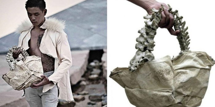 Seorang pereka fesyen dari negara jiran, Indonesia telah menjual beg tangan yang diperbuat dari lidah buaya dan tulang belakang kanak-kanak.