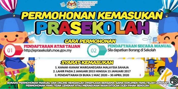Ibu bapa tentu teruja bila kami kata permohonan pra sekolah bagi sesi 2021 telah pun dibuka bermula 1 Mac 2020 sehingga 30 April 2020.