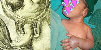 “Akan tetapi, disebabkan wanita itu sudah mengalami kontraksi kuat (yang menghimpit dan `mencengkam’ bayi), air ketuban sudah pun pecah, dan kedudukan bayi yang melintang, doktor mengalami kesukaran untuk mengeluarkan bayi daripada potongan transverse di rahim.