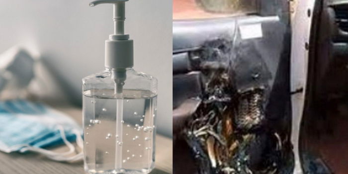 Amaran keras kepada semua pengguna hand sanitizer yang mana anda tidak boleh sesekali meninggalkan botol pembasmi kuman itu di dalam kereta kerana jika ia panas boleh menyebabkan terbakar.