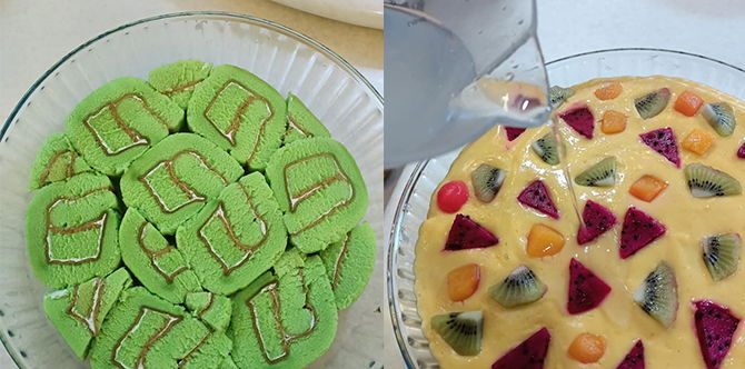 - Tapis dan curahkan agar-agar ke atas buah-buahan tadi.